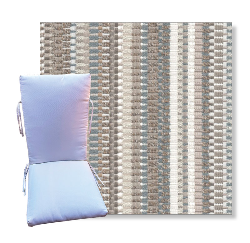 Order universal patio chair cushions in Revolution Outdoor Fabrics - Find a new colorful replacement cushion in 9 sizes - This style of patio chair cushion features a center seam, hinged design with fabric ties. These outdoor cushions are custom made to order in the fabric and size you need.