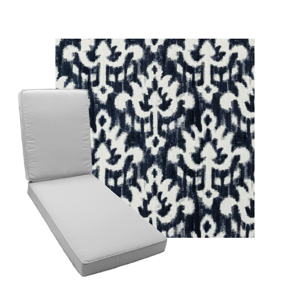 Patra Indigo - Boxed Chaise Lounge Cushion - Sunbrella© Fabric