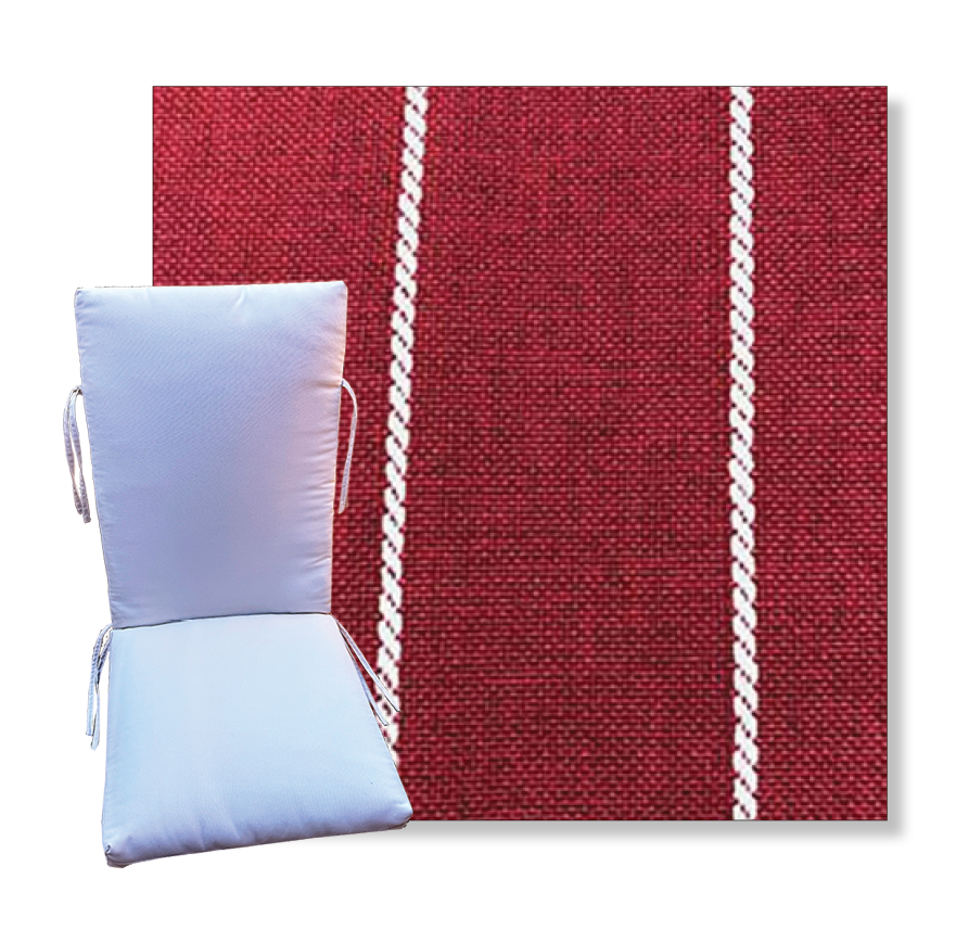 Order universal patio chair cushions in Revolution Outdoor Fabrics - Find a new colorful replacement cushion in 9 sizes - This style of patio chair cushion features a center seam, hinged design with fabric ties. These outdoor cushions are custom made to order in the fabric and size you need.