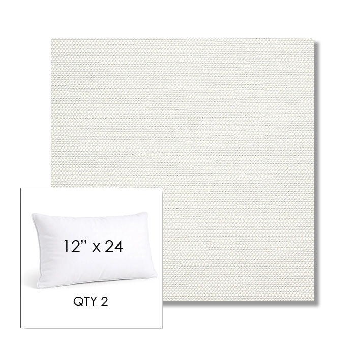 Custom 12" x 24" Lumbar Pillow SET OF TWO, square outdoor pillows available in over 700 Sunbrella® fabrics. Choose piping or knife-edge finish with optional covered button detail. Each pillow includes a zipper opening and premium outdoor insert for comfort, durability, and long-lasting outdoor performance.