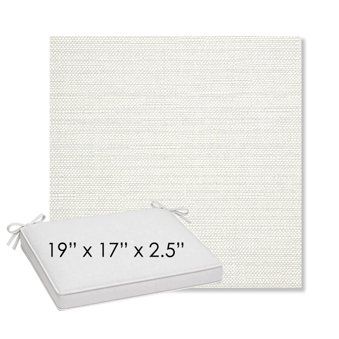 19" x 17" x 2.5" Thick outdoor dining chair seat cushion designed for a simple, ready-to-order fit. Features a boxed construction with piping, fabric ties, and zipper opening. Made in 700+ Sunbrella® fabrics for long-lasting outdoor performance.