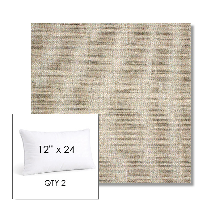 Custom 12" x 24" Lumbar Pillow SET OF TWO, square outdoor pillows available in over 700 Sunbrella® fabrics. Choose piping or knife-edge finish with optional covered button detail. Each pillow includes a zipper opening and premium outdoor insert for comfort, durability, and long-lasting outdoor performance.