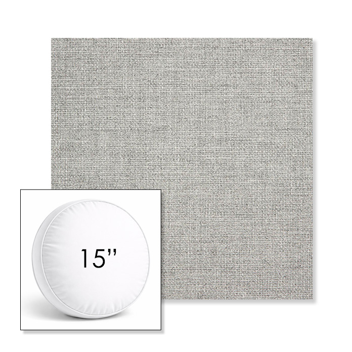 Custom 15" Round Boxed Sunbrella® Outdoor Pillow (3" Thick) available in over 700 Sunbrella® fabrics. Comes standard with piping. Optional covered button detail. Each pillow includes a zipper opening and premium outdoor insert for comfort, durability, and long-lasting outdoor performance.
