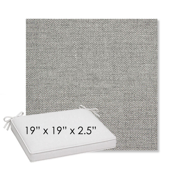 19" x 19" x 2.5" Thick outdoor dining chair seat cushion designed for a simple, ready-to-order fit. Features a boxed construction with piping, fabric ties, and zipper opening. Made in 700+ Sunbrella® fabrics for long-lasting outdoor performance.