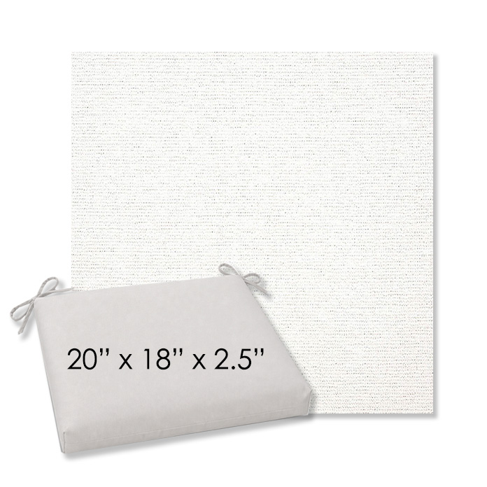 20" x 18" x 2.5" Thick - Universal outdoor dining chair seat cushion in Sunbrella Solution Dyed Polyester Outdoor Fabrics. Features with generous fabric ties and outdoor foam with polyester fiber fill—perfect for most patio dining chairs. Each Outdoor Patio Dining Chair Cushion is a center seam design and 2.5" Thick. All patio dining chair cushions are custom made to order in the size and fabric of your choice.