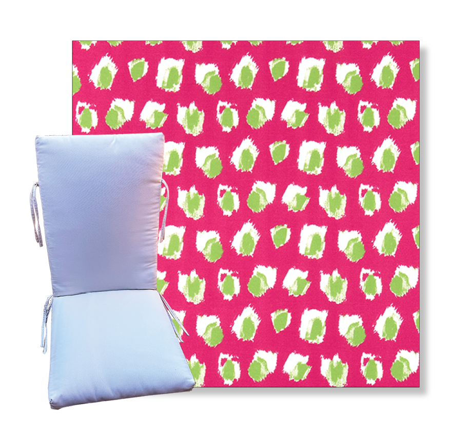 Universal patio chair cushions in Premier Prints Outdoor Fabrics - Find a new colorful replacement cushion in 9 sizes - This style of patio chair cushion features a center seam, hinged design with fabric ties. These outdoor cushions are custom made to order in the fabric and size you need.