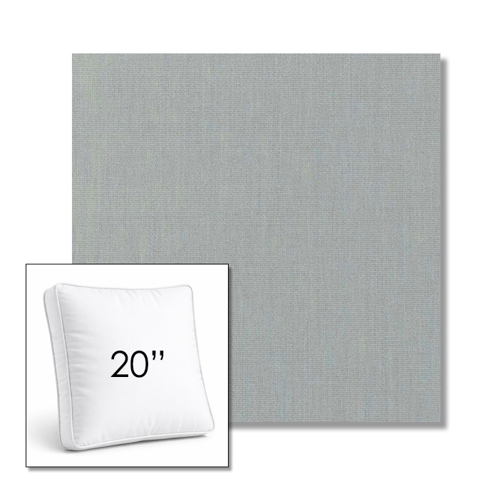 Custom 20" Square Boxed Sunbrella® Outdoor Pillow (3" Thick) available in over 700 Sunbrella® fabrics. Comes standard with piping. Optional covered button detail. Each pillow includes a zipper opening and premium outdoor insert for comfort, durability, and long-lasting outdoor performance.