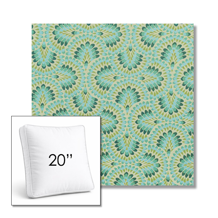 Plume Peacock | 20" Square Boxed Sunbrella® Outdoor Pillow (3" Thick)