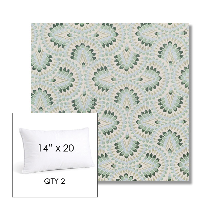 Custom 14" x 20" Lumbar Pillows - SET OF 2 square outdoor pillows available in over 700 Sunbrella® fabrics. Choose piping or knife-edge finish with optional covered button detail. Each pillow includes a zipper opening and premium outdoor insert for comfort, durability, and long-lasting outdoor performance.