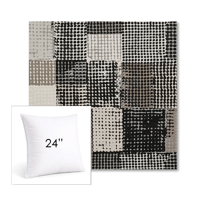 Custom 24" square outdoor pillows available in over 700 Sunbrella® fabrics. Choose piping or knife-edge finish with optional covered button detail. Each pillow includes a zipper opening and premium outdoor insert for comfort, durability, and long-lasting outdoor performance.