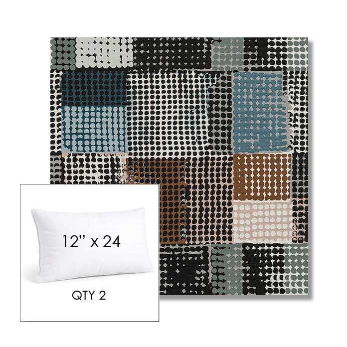Custom 12" x 24" Lumbar Pillow SET OF TWO, square outdoor pillows available in over 700 Sunbrella® fabrics. Choose piping or knife-edge finish with optional covered button detail. Each pillow includes a zipper opening and premium outdoor insert for comfort, durability, and long-lasting outdoor performance.