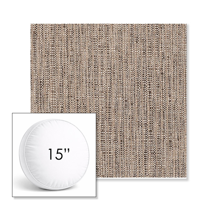 Custom 15" Round Boxed Sunbrella® Outdoor Pillow (3" Thick) available in over 700 Sunbrella® fabrics. Comes standard with piping. Optional covered button detail. Each pillow includes a zipper opening and premium outdoor insert for comfort, durability, and long-lasting outdoor performance.
