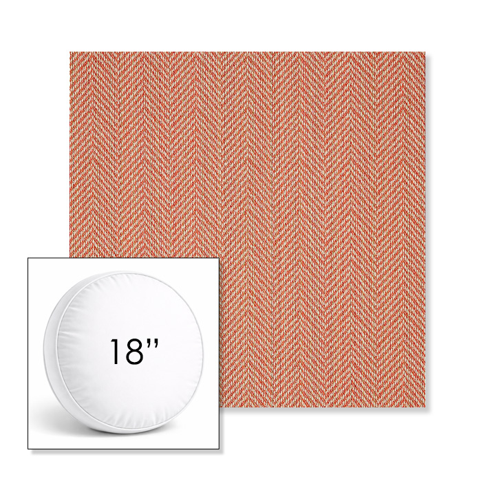 Custom 18" Round Boxed Sunbrella® Outdoor Pillow (3" Thick) available in over 700 Sunbrella® fabrics. Comes standard with piping. Optional covered button detail. Each pillow includes a zipper opening and premium outdoor insert for comfort, durability, and long-lasting outdoor performance.