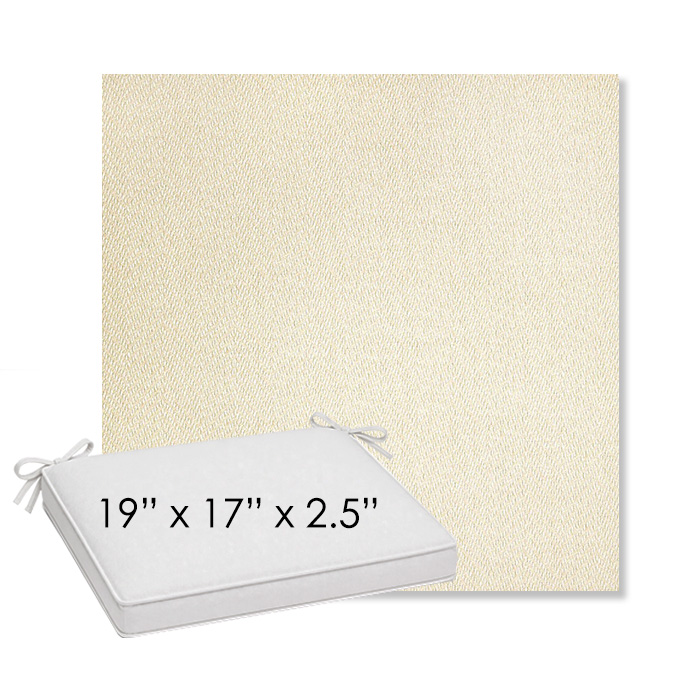 19" x 17" x 2.5" Thick outdoor dining chair seat cushion designed for a simple, ready-to-order fit. Features a boxed construction with piping, fabric ties, and zipper opening. Made in 700+ Sunbrella® fabrics for long-lasting outdoor performance.