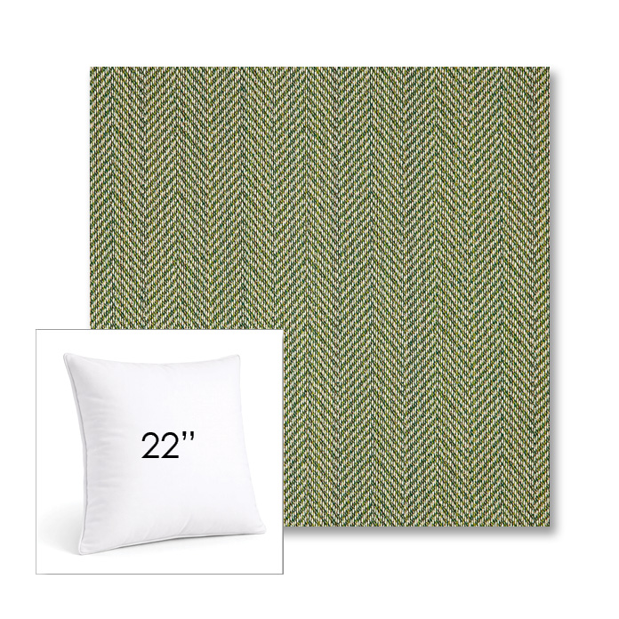 Custom 22" square outdoor pillows available in over 700 Sunbrella® fabrics. Choose piping or knife-edge finish with optional covered button detail. Each pillow includes a zipper opening and premium outdoor insert for comfort, durability, and long-lasting outdoor performance.