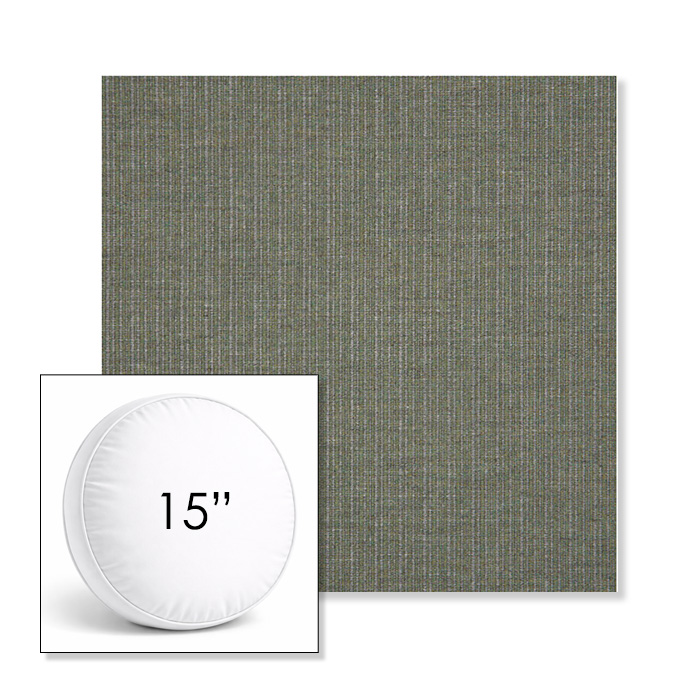 Custom 15" Round Boxed Sunbrella® Outdoor Pillow (3" Thick) available in over 700 Sunbrella® fabrics. Comes standard with piping. Optional covered button detail. Each pillow includes a zipper opening and premium outdoor insert for comfort, durability, and long-lasting outdoor performance.