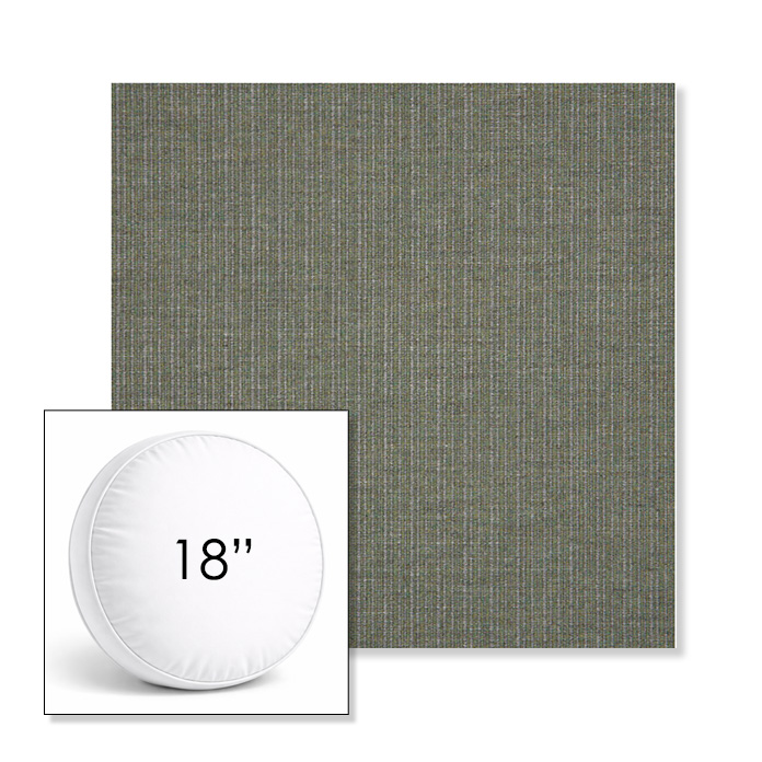 Custom 18" Round Boxed Sunbrella® Outdoor Pillow (3" Thick) available in over 700 Sunbrella® fabrics. Comes standard with piping. Optional covered button detail. Each pillow includes a zipper opening and premium outdoor insert for comfort, durability, and long-lasting outdoor performance.