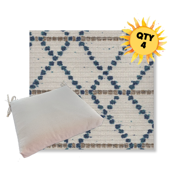 Each cushion is available in 4 universal sizes so you can choose the best fit for your existing outdoor dining furniture. A generous set of fabric ties keeps the cushion securely in place, even when people shift and move during meals. The interior features a combination of outdoor-rated foam and plush polyester fiber, creating a seat that feels soft yet supportive and holds its shape over time.