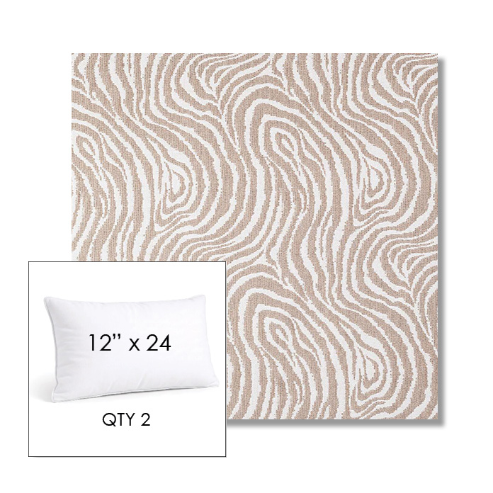 Custom 12" x 24" Lumbar Pillow SET OF TWO, square outdoor pillows available in over 700 Sunbrella® fabrics. Choose piping or knife-edge finish with optional covered button detail. Each pillow includes a zipper opening and premium outdoor insert for comfort, durability, and long-lasting outdoor performance.