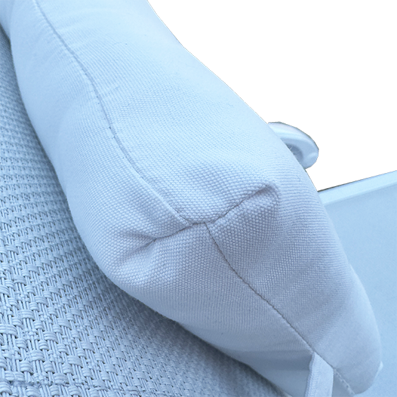Outdoor Head Rest Pillow in more than 300 Sunbrella Fabrics– 19" W x 8" H x 2" Thick – Made with Sunbrella® fabric, includes zipper opening and 19.5" Velcro straps to secure to your chaise or chair. Custom made to order.