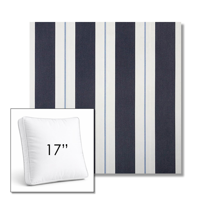 Custom 17" Square Boxed Sunbrella® Outdoor Pillow (3" Thick) available in over 700 Sunbrella® fabrics. Comes standard with piping. Optional covered button detail. Each pillow includes a zipper opening and premium outdoor insert for comfort, durability, and long-lasting outdoor performance.