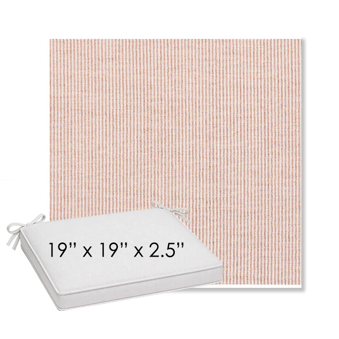 19" x 19" x 2.5" Thick outdoor dining chair seat cushion designed for a simple, ready-to-order fit. Features a boxed construction with piping, fabric ties, and zipper opening. Made in 700+ Sunbrella® fabrics for long-lasting outdoor performance.