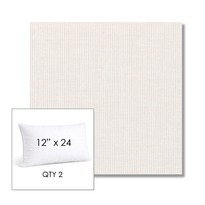 Custom 12" x 24" Lumbar Pillow SET OF TWO, square outdoor pillows available in over 700 Sunbrella® fabrics. Choose piping or knife-edge finish with optional covered button detail. Each pillow includes a zipper opening and premium outdoor insert for comfort, durability, and long-lasting outdoor performance.