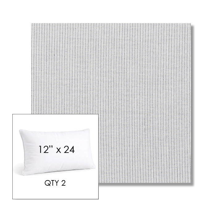 Custom 12" x 24" Lumbar Pillow SET OF TWO, square outdoor pillows available in over 700 Sunbrella® fabrics. Choose piping or knife-edge finish with optional covered button detail. Each pillow includes a zipper opening and premium outdoor insert for comfort, durability, and long-lasting outdoor performance.