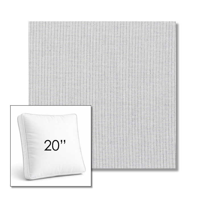 Custom 20" Square Boxed Sunbrella® Outdoor Pillow (3" Thick) available in over 700 Sunbrella® fabrics. Comes standard with piping. Optional covered button detail. Each pillow includes a zipper opening and premium outdoor insert for comfort, durability, and long-lasting outdoor performance.