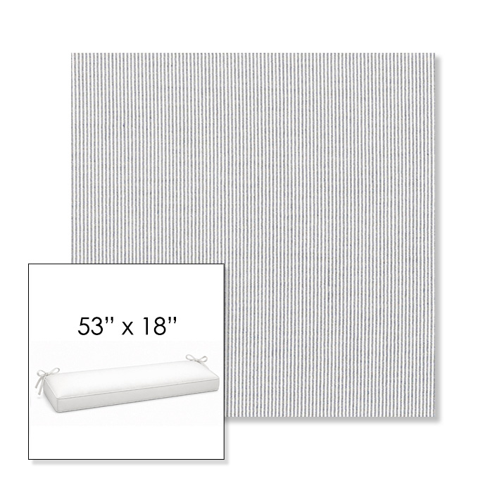 53" outdoor bench cushion designed for a simple, ready-to-order fit. Features a boxed construction with piping, fabric ties, and zipper opening. Made in 700+ Sunbrella® fabrics for long-lasting outdoor performance.