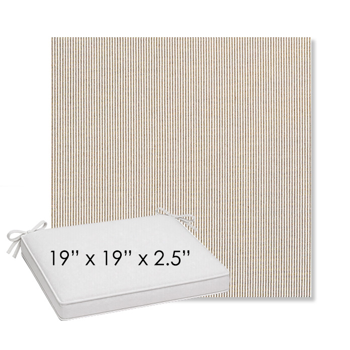 19" x 19" x 2.5" Thick outdoor dining chair seat cushion designed for a simple, ready-to-order fit. Features a boxed construction with piping, fabric ties, and zipper opening. Made in 700+ Sunbrella® fabrics for long-lasting outdoor performance.