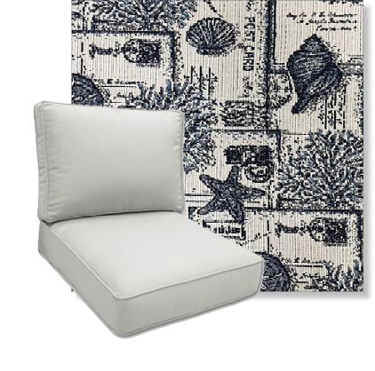 Our Easy order deep seating replacement cushion come in 4 common sizes and in beautiful outfoor printed polyester fabrics from Richloom Solarium..