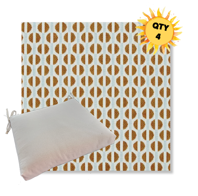 Sunbrella® Luxury Seat Cushions — Bundle of 4 (Custom Made) Upgrade your outdoor dining space with a coordinated set of four luxury Sunbrella® seat cushions, crafted in our most upscale Sunbrella fabric selections. These are made for patios that don’t do “average”—the kind of outdoor setting where every detail feels intentional, elevated, and unmistakably well-designed. Each bundle is custom made to order for a tailored look and feel, with premium construction designed for long-lasting comfort and performance. Choose from four versatile sizes to fit most outdoor dining chair styles, then select a higher-end Sunbrella® fabric that instantly sets your space apart from the run-of-the-mill cushion look.