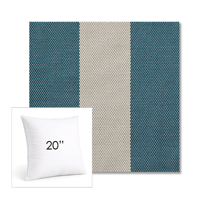 Custom 20" square outdoor pillows available in over 700 Sunbrella® fabrics. Choose piping or knife-edge finish with optional covered button detail. Each pillow includes a zipper opening and premium outdoor insert for comfort, durability, and long-lasting outdoor performance.