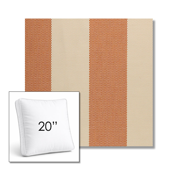Custom 20" Square Boxed Sunbrella® Outdoor Pillow (3" Thick) available in over 700 Sunbrella® fabrics. Comes standard with piping. Optional covered button detail. Each pillow includes a zipper opening and premium outdoor insert for comfort, durability, and long-lasting outdoor performance.