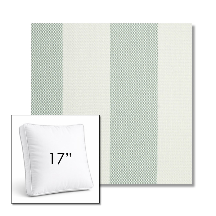 Custom 17" Square Boxed Sunbrella® Outdoor Pillow (3" Thick) available in over 700 Sunbrella® fabrics. Comes standard with piping. Optional covered button detail. Each pillow includes a zipper opening and premium outdoor insert for comfort, durability, and long-lasting outdoor performance.
