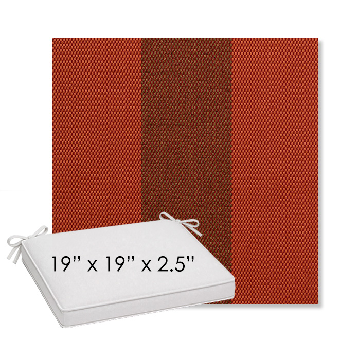 19" x 19" x 2.5" Thick outdoor dining chair seat cushion designed for a simple, ready-to-order fit. Features a boxed construction with piping, fabric ties, and zipper opening. Made in 700+ Sunbrella® fabrics for long-lasting outdoor performance.