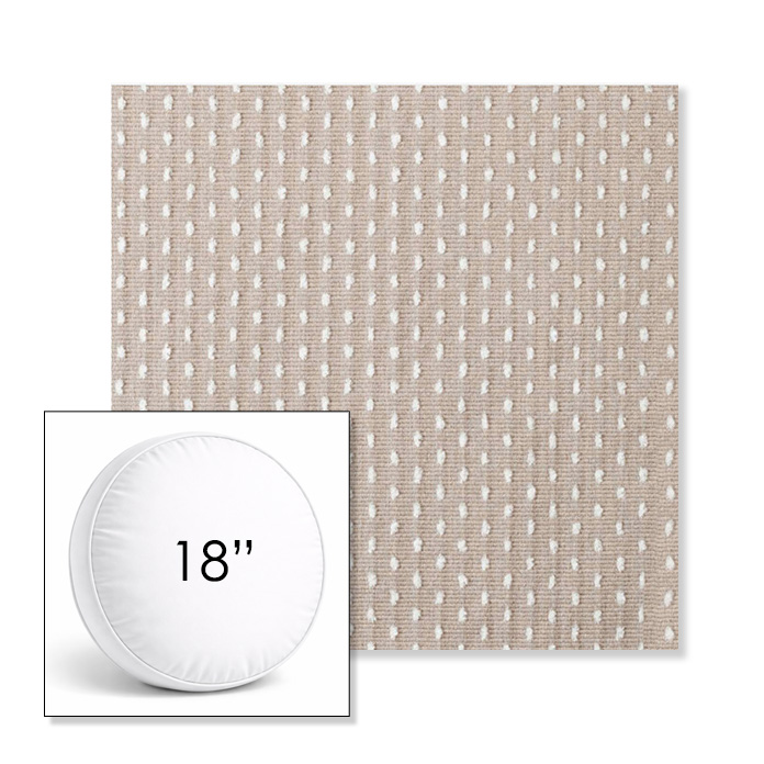 Custom 18" Round Boxed Sunbrella® Outdoor Pillow (3" Thick) available in over 700 Sunbrella® fabrics. Comes standard with piping. Optional covered button detail. Each pillow includes a zipper opening and premium outdoor insert for comfort, durability, and long-lasting outdoor performance.