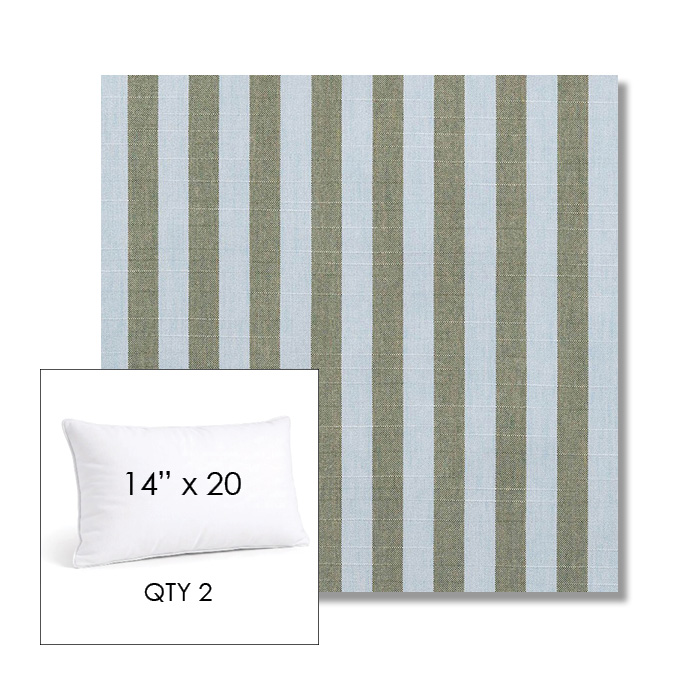 Custom 14" x 20" Lumbar Pillows - SET OF 2 square outdoor pillows available in over 700 Sunbrella® fabrics. Choose piping or knife-edge finish with optional covered button detail. Each pillow includes a zipper opening and premium outdoor insert for comfort, durability, and long-lasting outdoor performance.