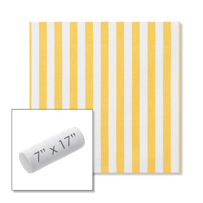 Custom 7" x 17" Outdoor Bolster Pillow Sunbrella® Fabric. Available in over 700 Sunbrella® fabrics. Comes standard with piping. Each pillow includes a zipper opening and premium outdoor insert for comfort, durability, and long-lasting outdoor performance.