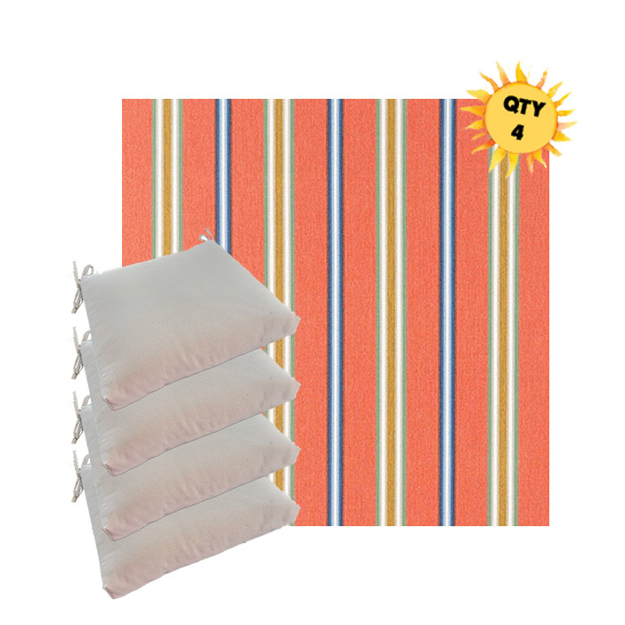 Sunbrella® Outdoor Dining Chair Seat Cushions — Bundle of 4 (Custom Made) Upgrade your outdoor dining space with a coordinated set of four luxury Sunbrella® seat cushions, crafted in our most upscale Sunbrella fabric selections. These are made for patios that don’t do “average”—the kind of outdoor setting where every detail feels intentional, elevated, and unmistakably well-designed. Each bundle is custom made to order for a tailored look and feel, with premium construction designed for long-lasting comfort and performance. Choose from four versatile sizes to fit most outdoor dining chair styles, then select a higher-end Sunbrella® fabric that instantly sets your space apart from the run-of-the-mill cushion look.