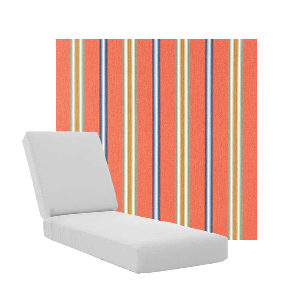 Boxed Chaise Lounge Cushions in Sunbrella Fabrics. Separate Seat and Back Cushions. Available in 3 sizes to fit a variety of outdoor furniture styles. Our boxed Chaise Lounge Cushions feature foam and fiber, piping and zipper openings. All chaise lounge replacement cushions are custom made to order in your choice of fabric and size. Made in the USA. Lead times may vary depending on the time of year.