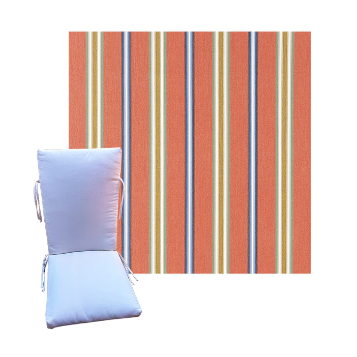 Order universal patio chair cushions in Sunbrella Outdoor Fabrics - Find a new colorful replacement cushion in 9 sizes - This style of patio chair cushion features a center seam, hinged design with fabric ties. These outdoor cushions are custom made to order in the fabric and size you need.