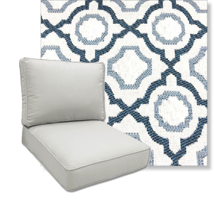 Our Easy order deep seating replacement cushion come in 4 common sizes and in beautiful outfoor printed polyester fabrics from Richloom Solarium..