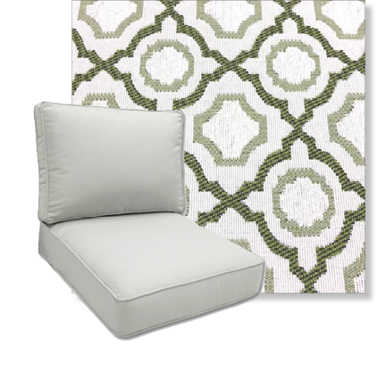 Our Easy order deep seating replacement cushion come in 4 common sizes and in beautiful outfoor printed polyester fabrics from Richloom Solarium..