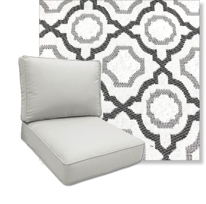 Our Easy order deep seating replacement cushion come in 4 common sizes and in beautiful outfoor printed polyester fabrics from Richloom Solarium..