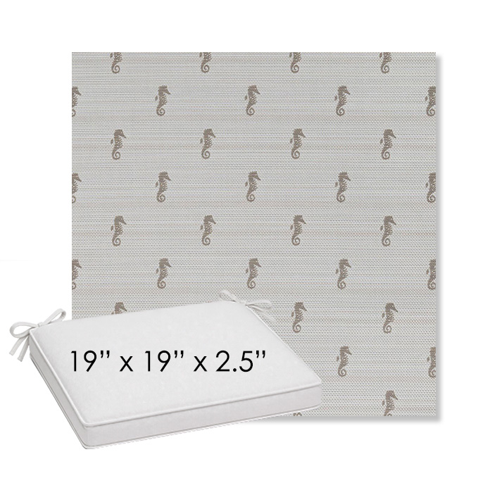 19" x 19" x 2.5" Thick outdoor dining chair seat cushion designed for a simple, ready-to-order fit. Features a boxed construction with piping, fabric ties, and zipper opening. Made in 700+ Sunbrella® fabrics for long-lasting outdoor performance.