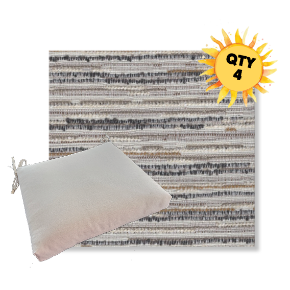 Each cushion is available in 4 universal sizes so you can choose the best fit for your existing outdoor dining furniture. A generous set of fabric ties keeps the cushion securely in place, even when people shift and move during meals. The interior features a combination of outdoor-rated foam and plush polyester fiber, creating a seat that feels soft yet supportive and holds its shape over time.