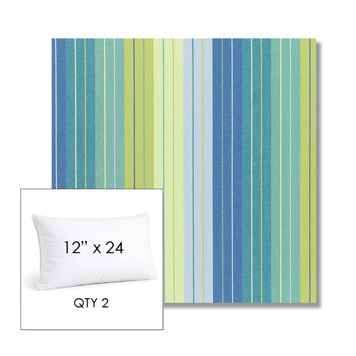Custom 12" x 24" Lumbar Pillow SET OF TWO, square outdoor pillows available in over 700 Sunbrella® fabrics. Choose piping or knife-edge finish with optional covered button detail. Each pillow includes a zipper opening and premium outdoor insert for comfort, durability, and long-lasting outdoor performance.