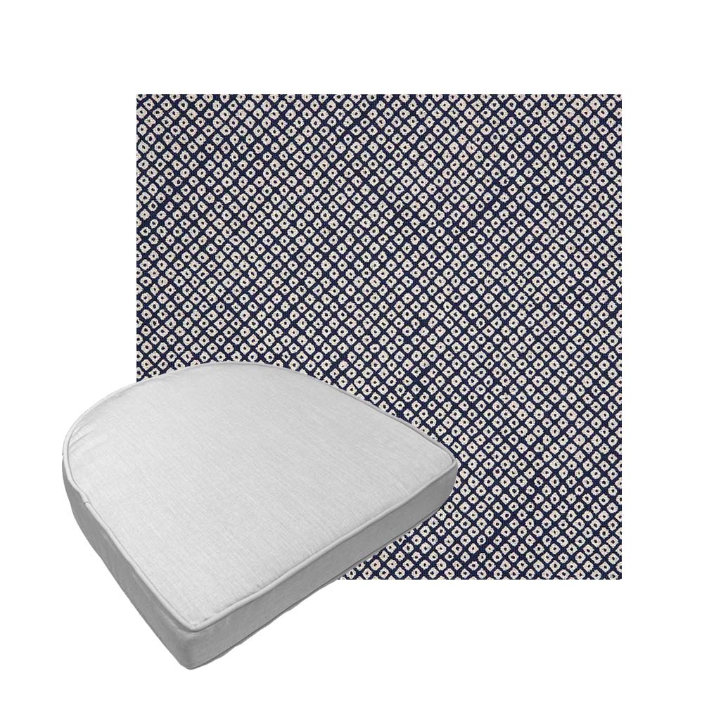 Shibori Indigo contoured or rounded seat cushion for wicker patio chairs